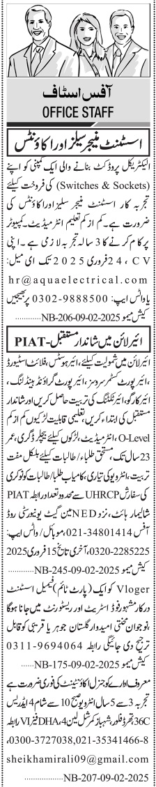 Jang Sunday Classified Ads 9 Feb 2025 for Office Staff
