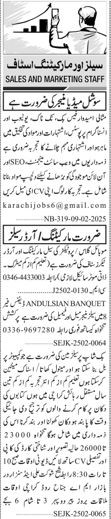 Jang Sunday Classified Ads 9 Feb 2025 for Sales & Marketing