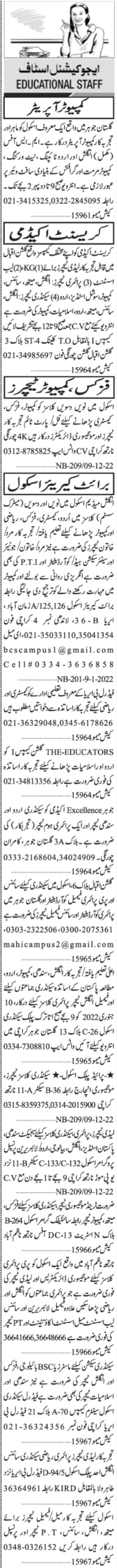 Jang Sunday Classified Ads 9 Jan 2022 For Educational Staff