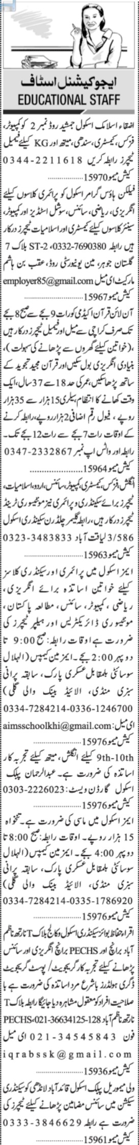 Jang Sunday Classified Ads 9 Jan 2022 for Educational Staff