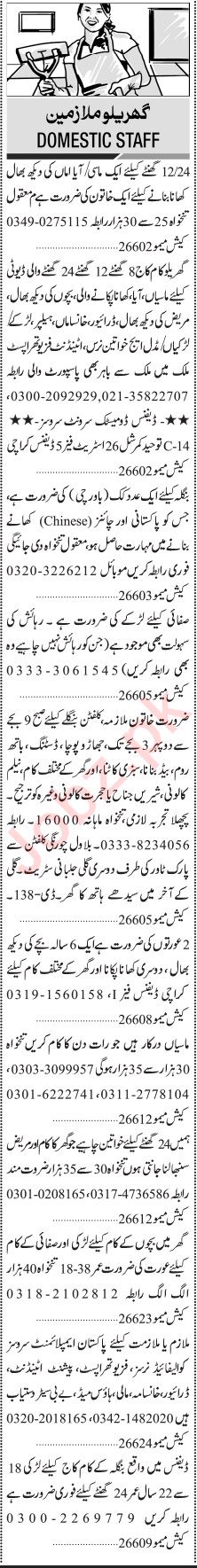 Jang Sunday Classified Ads 9 July 2023 For House Staff