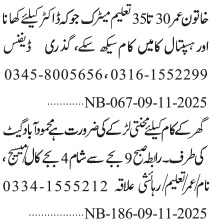 Jang Sunday Classified Ads 9 Nov 2025 For House Staff
