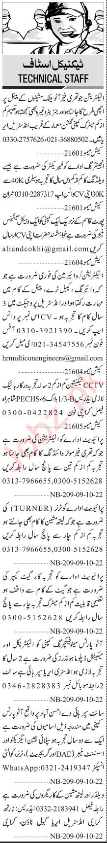 Jang Sunday Classified Ads 9 Oct 2022 For Technical Staff