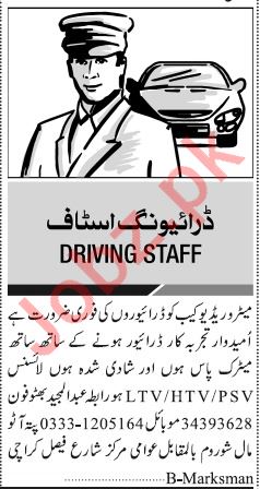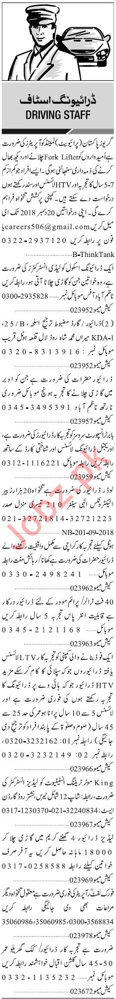 Jang Sunday Classified Ads 9th Dec 2018 For Driving Staff