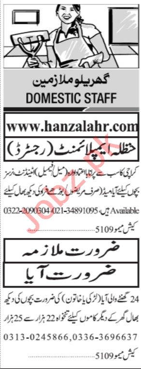 Jang Sunday Classified Ads 9th June 2019 for Domestic Staff