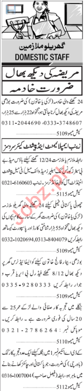 Jang Sunday Classified Ads 9th June 2019 For Domestic Staff