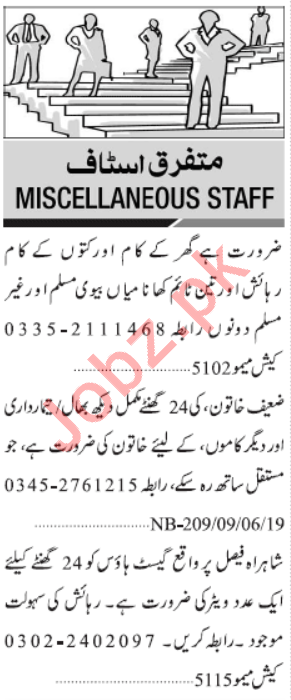 Jang Sunday Classified Ads 9th June 2019 For Multiple Staff