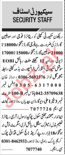 Jang Sunday Classified January 5th Security Jobs in Lahore