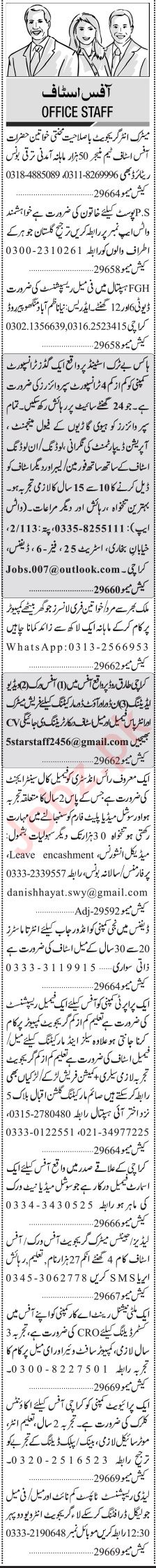 Vacant posts including sales staff, lady receptionist, customer relations officer, accounts clerk, social media expert, transport supervisor, labor, video editor, team manager, female receptionist, typist, marketing staff, marketing officer, foreman, call center agent, receptionist, cro, freelancer, office staff and personal secretary are announced in Private Company Karachi, karachi Sindh Pakistan as per 7 January 2024 advertisement in daily Jang Newspaper. Candidates with BBA, Bachelor, Middle, I.com, BA, Intermediate, Matric and B.com etc. educational background will be preferred.
