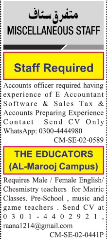 Private Company is looking for candidates for following posts as per job advertisement published in daily Jang Newspaper of February 16, 2025 for location Lahore, lahore Punjab Pakistan: