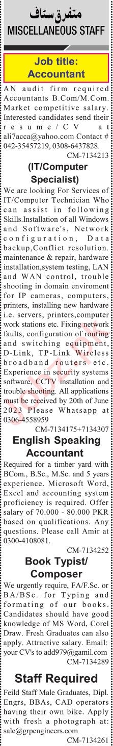Private Company latest Classifieds Management jobs and others can be applied till July 29, 2023 or as per closing date in newspaper ad. Read complete ad online to know how to apply on latest Private Company job opportunities. Skills in Data Backup, Accounting, SD-WAN, Security Systems, CCTV, Finance, Computer Support, Software Development, English Typing, Controller Area Network (CAN), Conflict Resolution, Urdu Typing and Wireless may be preferred for these Private Company jobs.