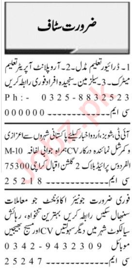 Vacant posts including news reporter, driver, ro plant operator, accountant, ltv driver, reporter and salesman are announced in Private Company Multan, multan, sialkot and karachi Punjab Pakistan as per 1 May 2023 advertisement in daily Jang Newspaper. Preferred Education is Bachelor, BBA, B.com, Intermediate, Matric, DAE and BA etc.
