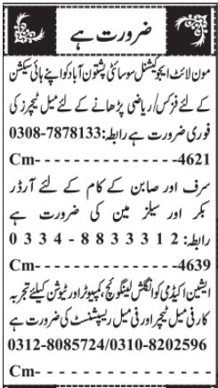 Private Company Quetta, quetta Balochistan Pakistan invites applications from eligible candidates for the post of receptionist, physics teacher, salesman, order booker, english language teacher, mathematics teacher and teacher as per advertisement of April 28, 2024 published in daily Jang Newspaper. Bachelor, BA, Intermediate, M.sc and MA etc. educational qualification will be preferred.