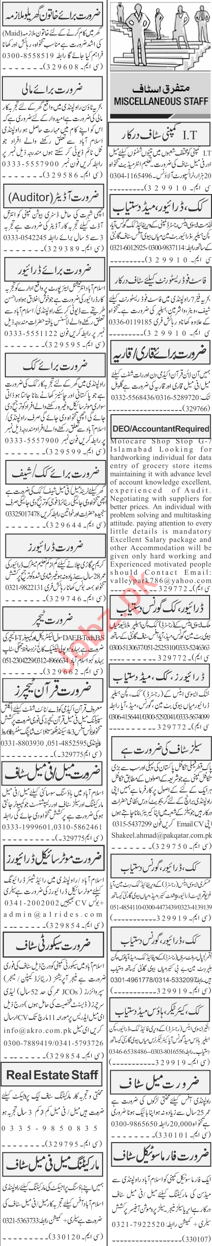 Graphic Designer, Hardware Technician, Software Engineer, Computer Programmer, Computer Operator, Data Entry Operator, Auto CAD Operator, PHP Developer, Web Developer, Application Programmer, Manager, Accounts Officer, Finance Manager, Sales Manager, Marketing Manager, Executive Manager, Branch Manager, Secretary, Security Guard, Driver seeks in well developed companies.