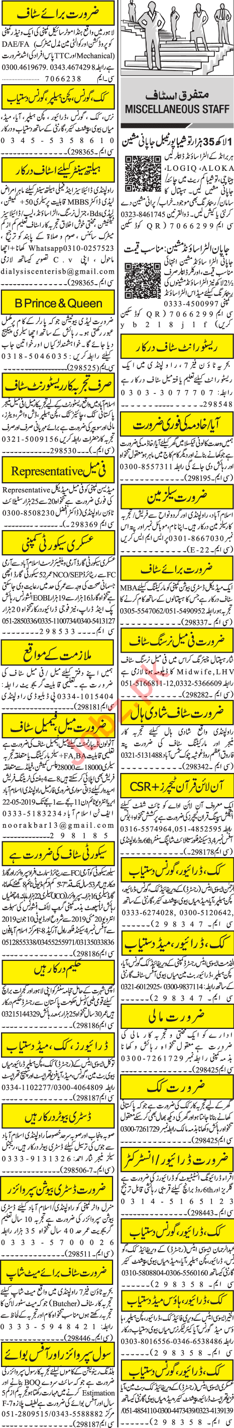 Jang Sunday Rawalpindi Classified Ads 26th May 2019