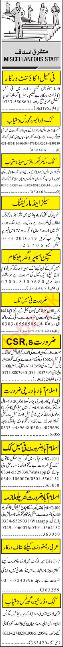 Private Company Islamabad, islamabad Islamabad Pakistan invites applications from eligible candidates for the post of pizza chef, marketing officer, driver, juice maker, husband wife, sales officer, cashier, customer service representative, aya, kitchen helper, female cook, nurse, cook helper, patient care, physiotherapist, governess, cook, waiter, csr, care taker, accountant, batman, house maid, ltv driver and maid as per advertisement of December 5, 2022 published in daily Jang Newspaper. Candidates with Bachelor, Middle, Matric and Intermediate etc. educational background will be preferred.