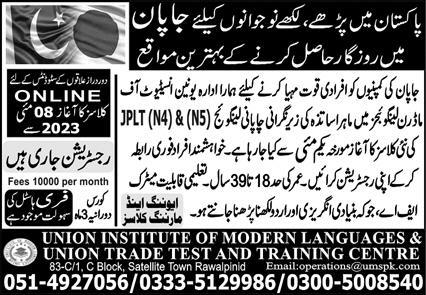 Trade Test and Training Center admissions 2023 for Japanese Language has been announced. Trade Test and Training Center Rawalpindi Punjab Pakistan welcomes students to apply for admissions in academic year 2023 in Language College. Eligible students for fulfilling criteria for admissions in Course can enroll as per Private admission policy 2023 till closing date 30 May 2023. Read newspaper ad for exact details.