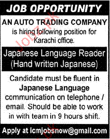 Apply as per details in job advertisement. Login to view further details of how to apply via https://www.jobz.pk online.