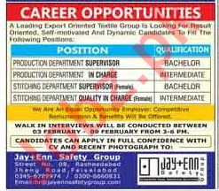 Latest Jay Enn Safety Group Manufacturing Posts Faisalabad 2025