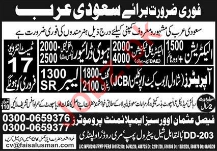 Latest Faisal Usman Overseas Employment Promoters Manufacturing Posts Saudi Arabia 2025