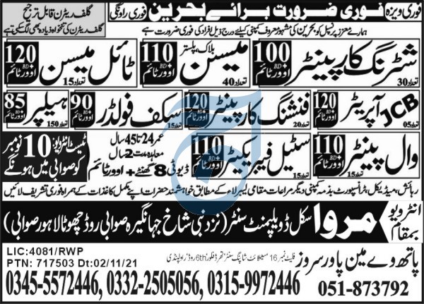 Latest Marwa Skill Development Center Construction Posts Bahrain 2025