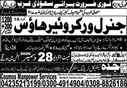 Vacancies in Jeddah Trade Test & Technical Training Center Advertisement December 2020