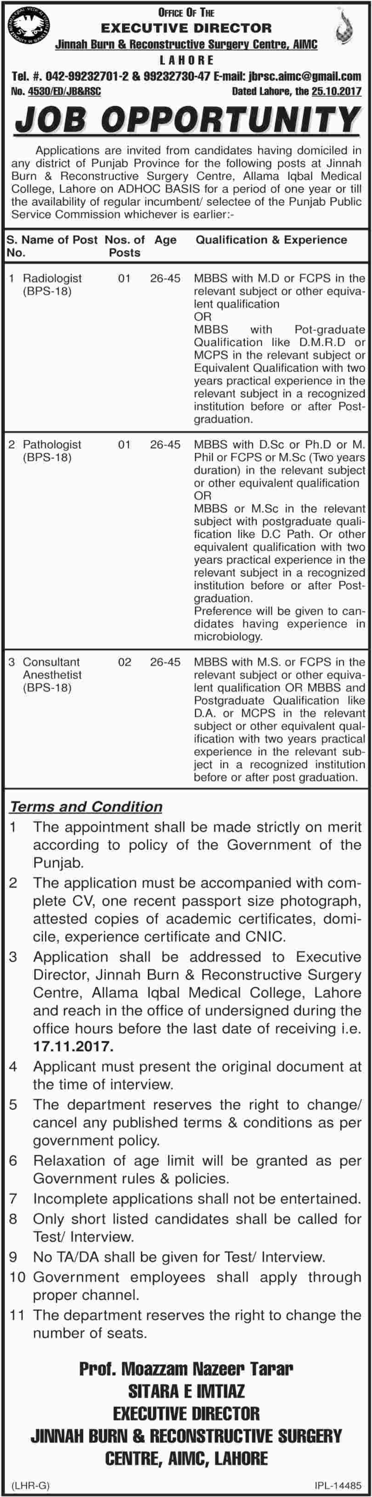 Jinnah Burn & Reconstructive Surgery Center AIMC Jobs