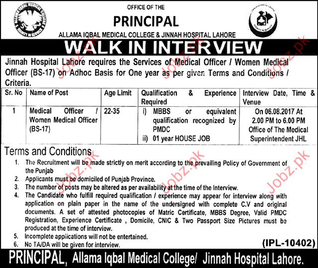 Apply as per details in job advertisement. Login to view further details of how to apply via https://www.jobz.pk online.