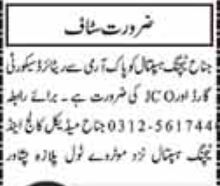 Jinnah Medical College Peshawar, peshawar Khyber Pakhtunkhwa KPK Pakistan invites applications from eligible candidates for the post of jco and security guard as per advertisement of December 5, 2025 published in daily Mashriq Newspaper. Preferred Education is Matric and Middle etc.