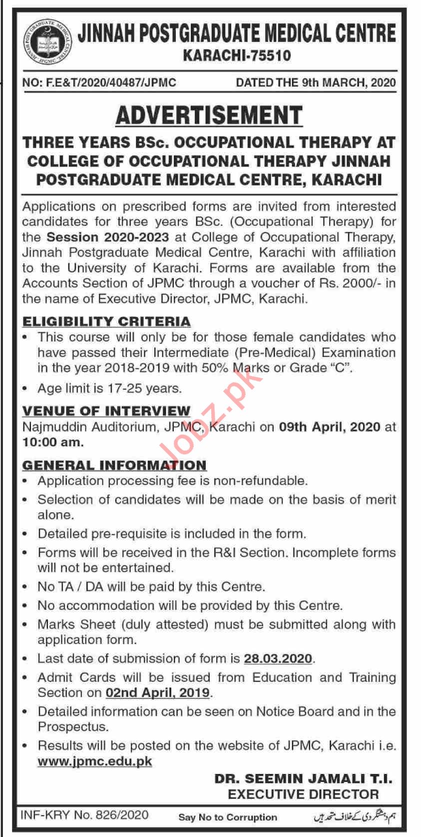 Jinnah Postgraduate Medical Centre JPMC Jobs Interview 2020