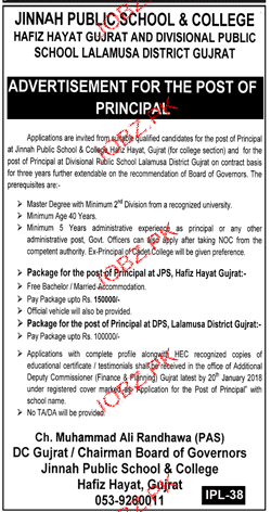 Latest Jinnah Public School & College Management Posts Gujrat 2025