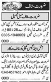 Vacant posts including retired staff, female staff and male staff are announced in Private Organization Lahore, lahore Punjab Pakistan as per 12 October 2022 advertisement in daily Khabrain Newspaper. Candidates with Matric, Intermediate and Middle etc. educational background will be preferred.
