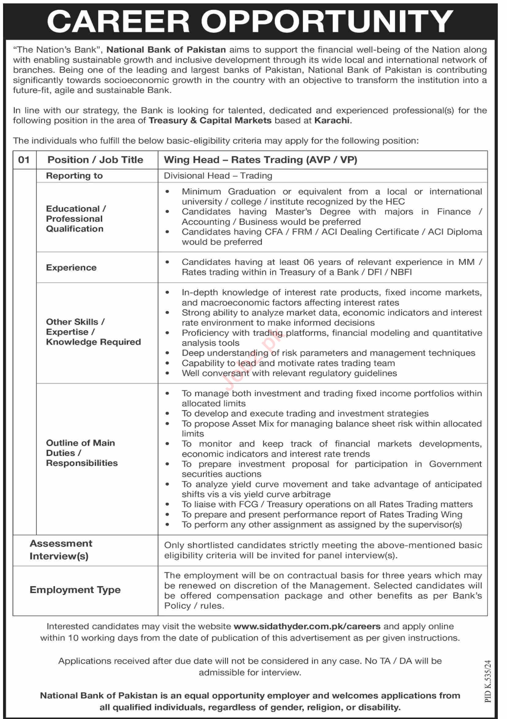 Vacancies in National Bank of Pakistan NBP Advertisement August 2024