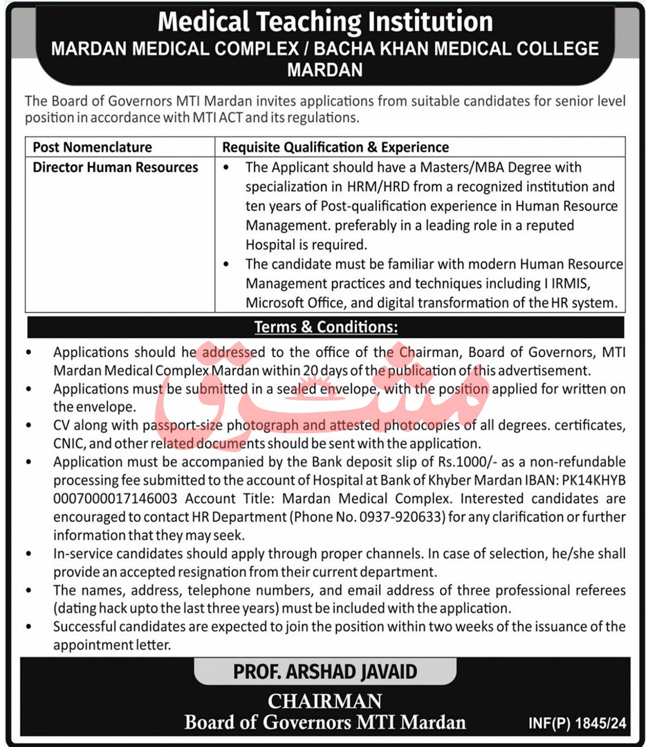 Medical Teaching Institution MTI is looking for candidates for following posts as per job advertisement published in daily Mashriq Newspaper of August 2, 2024 for location Mardan, mardan Khyber Pakhtunkhwa KPK Pakistan: