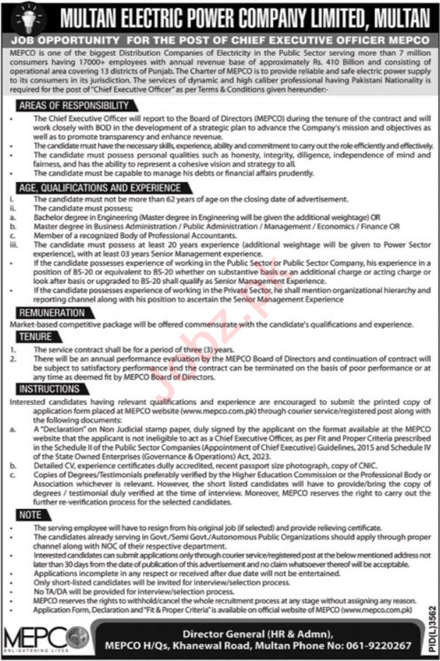 How to Apply on Multan Electric Power Company MEPCO Job Advertisement