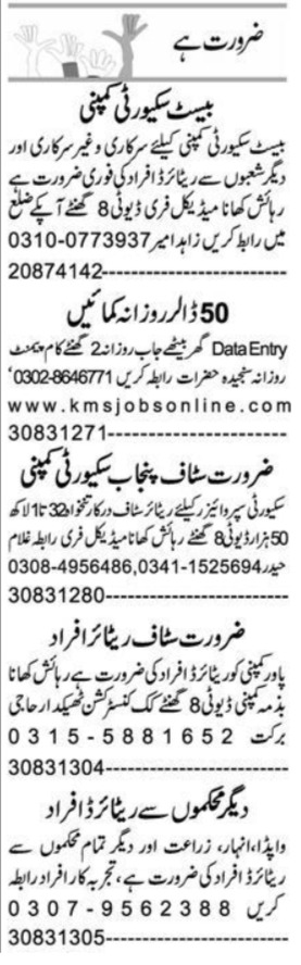 Candidates with Bachelor, Middle, Intermediate and Matric etc. educational background will be preferred.