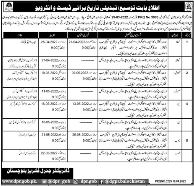 Job Interviews 2022 For Directorate General Fisheries Quetta