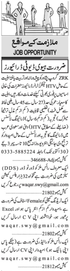 Vacant posts including female staff, rider, driver and sale man are announced in Private Organization Karachi, karachi Sindh Pakistan as per 19 October 2022 advertisement in daily Jang Newspaper. Preferred Education is Bachelor, Master, Matric and Intermediate etc.
