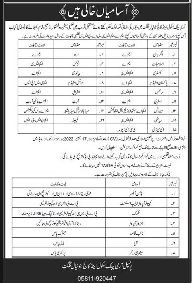 Vacancies in Army Public School & College APS&C Advertisement October 2022