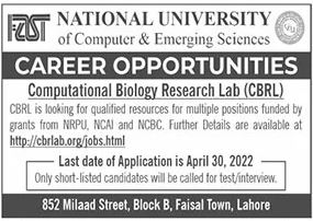 Vacancies in National University of Computer and Emerging Sciences Advertisement April 2022