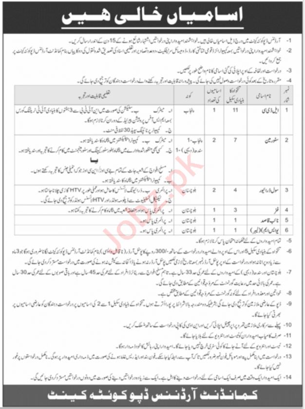Job Openings At Ordnance Depot Quetta