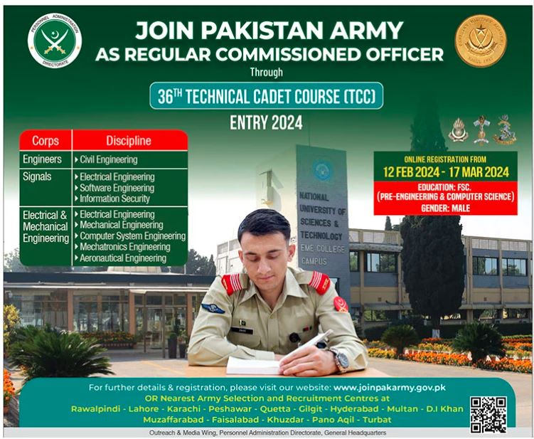Job Openings at Pakistan Army as Technical Cadet Course 2024