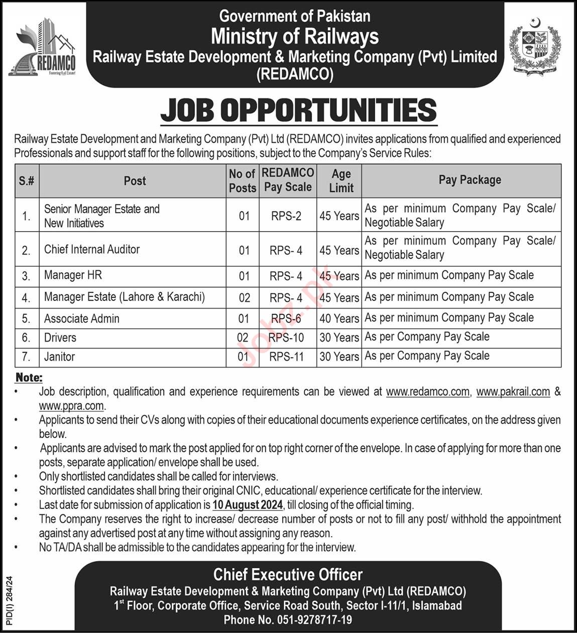 Ministry of Railways is looking for candidates for following posts as per job advertisement published in daily Other Newspaper of July 15, 2024 for location Islamabad, islamabad Islamabad Pakistan: