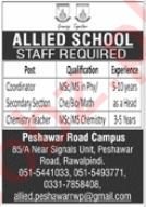 ALLIED SCHOOL jobs advertisement dated about 10 December 2023 in daily Jang Newspaper invites application for the vacant post of chemistry teacher and coordinator secondary section in Rawalpindi, rawalpindi Punjab Pakistan. Persons with Mphil, MS and M.sc etc. education can apply.