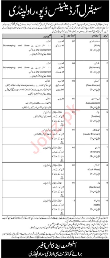Latest Central Ordnance Depot COD Management Posts Rawalpindi 2025