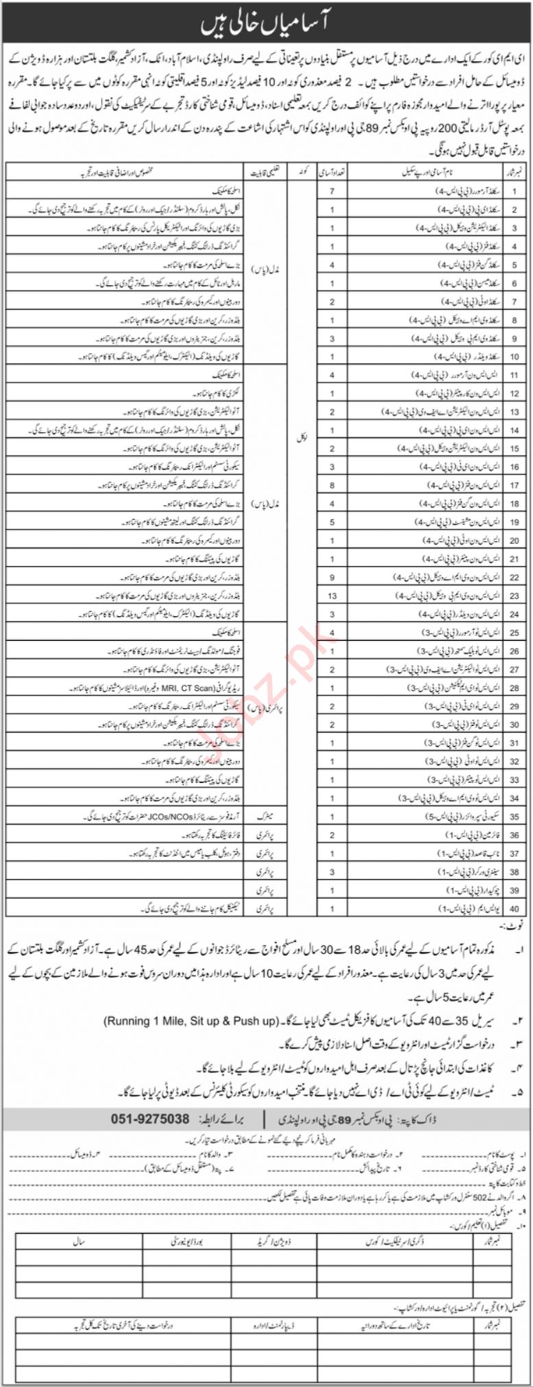 Vacant posts including ss one vma vehicle, ss one ot, fireman, skilled vmb vehicle, usm, skilled vma vehicle, security supervisor, skilled armour, ss one et, skilled ot, ss one armour, ss one vmb vehicle, skilled gun fitter, naib qasid, skilled electrician, ss one fitter, ss one painter, skilled welder, ss one machinist, chowkidar, ss two, ss one carpenter, ss one electrician vehicle, skilled fitter, ss one ep, ss one electrician, sanitary worker, ss one gun fitter, skilled mason and skilled ep are announced in Government Organization Rawalpindi, rawalpindi Punjab Pakistan as per 29 December 2024 advertisement in daily Jang Newspaper. Candidates with Matric, Primary and Middle etc. educational background will be preferred.