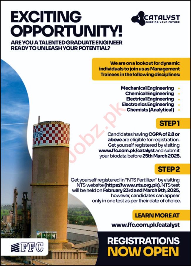 Fauji Fertilizer Company FFC latest Private Management jobs and others can be applied till 25 March 2025 or as per closing date in newspaper ad. Read complete ad online to know how to apply on latest Fauji Fertilizer Company FFC job opportunities.
