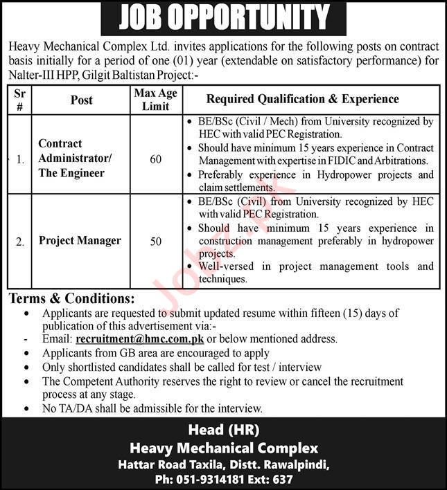 Heavy Mechanical Complex HMC invites applications for job positions advertised in daily Express dated 25 February 2024 for following vacancies in Rawalpindi, rawalpindi Punjab Pakistan.