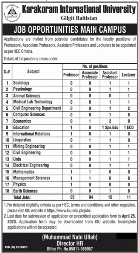 Latest Education jobs and others Government jobs in Karakoram International University closing date is around April 25, 2023, see exact from ad. Read complete ad online to know how to apply on latest Karakoram International University job opportunities.