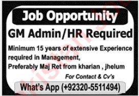 Private Company jobs advertisement dated about 30 June 2024 in daily Jang Newspaper invites application for the vacant post of gm hr and gm admin in Jhelum, jhelum Punjab Pakistan. Candidates with MS, Bachelor and Master etc. educational background will be preferred.